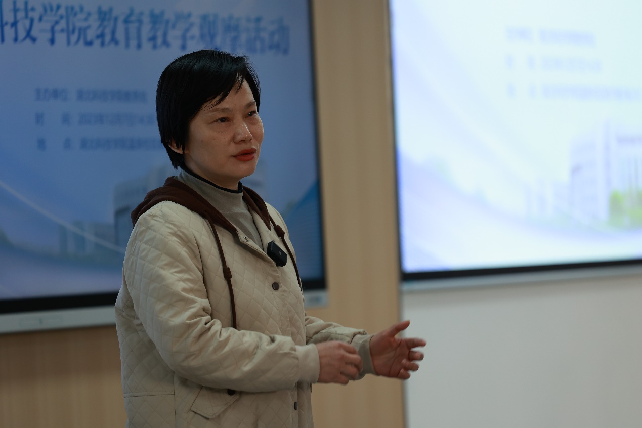 党委书记闫英姿为观摩活动致辞。她结合自己的求学成长经历,通过讲述对自己影响最深的老师,深入浅出地阐释了好老师对人才培养的重要性。她指出,本科教育是学校的中心工作,课堂教学是人才培养工作的主阵地。学校始终胸怀这个“校之大者”,一直致力于提高教学水平,推动教育教学改革与创新,聚焦立德树人根本任务。她进一步指出,习近平总书记在二十届中央政治局第五次集体学习时强调,要坚持把高质量发展作为各级各类教育的生命线,加快建设高质量教育体系。学校开展教育教学观摩活动,目的就是要充分发挥优秀教师的引领作用和教学观摩课的示范作用,引导广大教师贯彻落实新教学理念,深化教育教学改革,增进教师之间的教学探讨和交流,使教育教学观摩成为教师之间相互交流、共同提高的平台,锻造一支与学校高质量转型发展相适应的教师队伍。她希望广大教师要苦练教学内功,不断提高教学水平,注重教学质量和学生发展,积极探索新时代高等教育教学模式和方法。