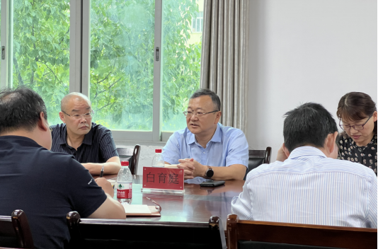 白育庭一行与人文与传媒学院领导班子、党支部书记、师生代表等就党支部建设、专业建设、学生管理、就业实习、人才引进、校园文化生活等内容开展座谈。